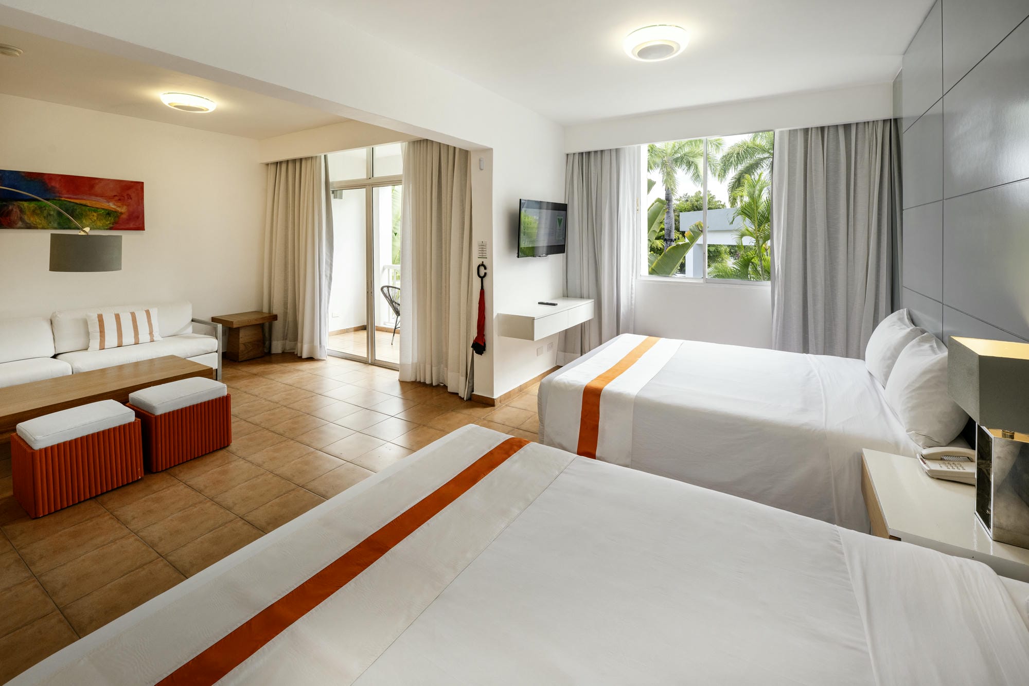 Nestled along Miches’ pristine coastline, our expansive beachfront resort offers breathtaking views of the Caribbean Sea. Indulge in 535 Superior rooms, including options with private plunge pools, this piece of paradise caters to couples, families, and adventurers. Delight your taste buds with diverse culinary delights and enjoy regional cuisine at our oceanfront bars and restaurants or sip tropical cocktails at the beach. Take part in our extensive entertainment offer with themed parties, striking shows and daily activities that keep guests of all ages smiling.