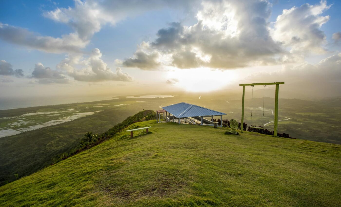 Nous partirons en camion de 24 places, avec des sièges confortables et des côtés ouverts. En une demi-heure, nous atteindrons la Laguna Limón, une réserve naturelle, que nous longerons en bateau. Nous ferons ensuite une halte dans une ferme où nous assisterons à la transformation artisanale de la noix de coco, du cacao et du tabac. Nous remonterons ensuite la montagne, avec un bref arrêt dans une rizerie. La Montaña (305 mètres) est époustouflante, offrant une vue à 360 degrés, des balançoires suspendues et deux types de tyroliennes. Vous aurez envie d'y rester toute la journée !
